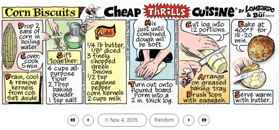 1. ‘Running on Empty ,’ 2. ‘Rhythm of the Rain ,’ 3. ‘Safety Dance ,’ and 4. ‘Share The Land ,’ and the ‘Cheap Thrills Cuisine’ recipe 5. ‘Corn Biscuits ‘