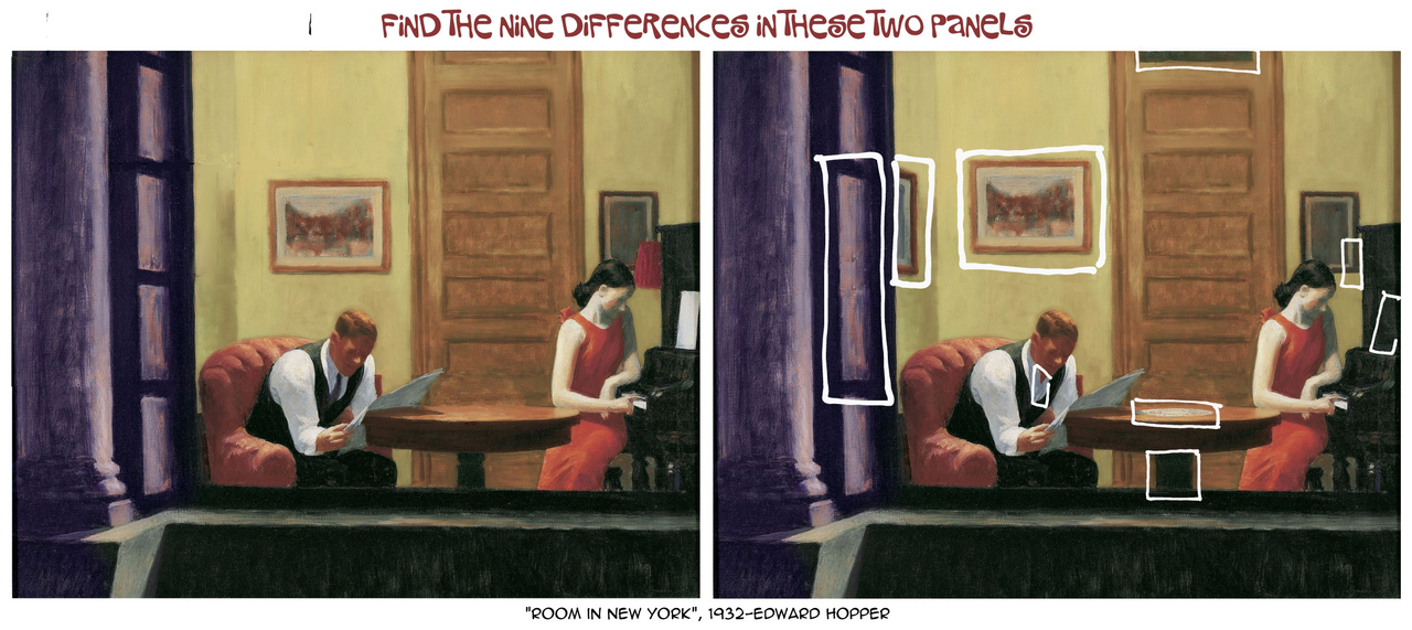 Here are two rooms that look pretty much the same, yet there are nine differences between them!