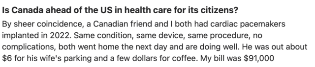 According to a post from the Toronto Sun, about 15,500 people died waiting for health care in 2023-24. Still a few kinks to work out in the system. I don’t know if the Sun is reliable or a rag, so take this with a grain of salt until somebody with more familiarity can vouch for them.