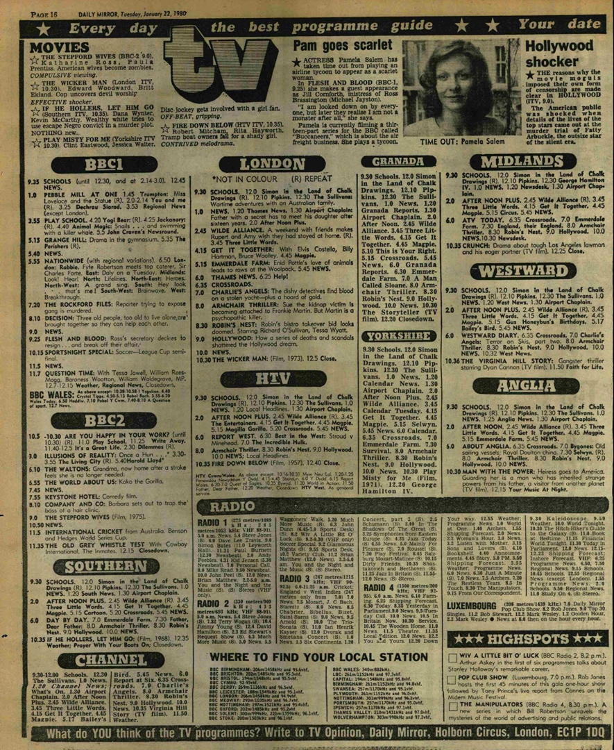TV listings from the date 22nd of January 1980 from here in the UK.