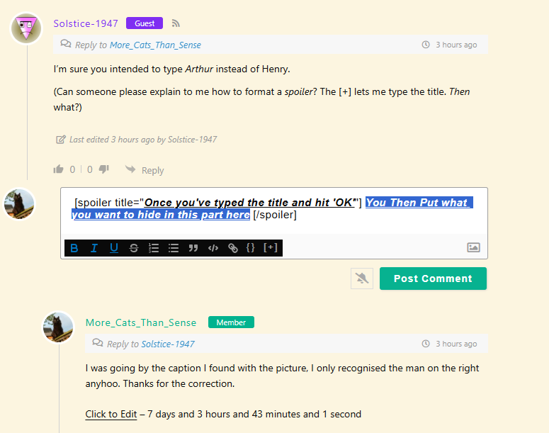 (Can someone please explain to me how to format a spoiler? The [+] lets me type the title. Then what?)