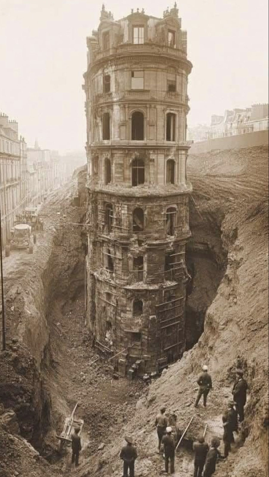 At least 3 or 4 sites declare that it’s a building in Edinburgh, Scotland; a somewhat equal number say that it’s in Paris, discovered during the late 19th century excavation for the Metro. The ones I looked at all had comments refuting either claim.