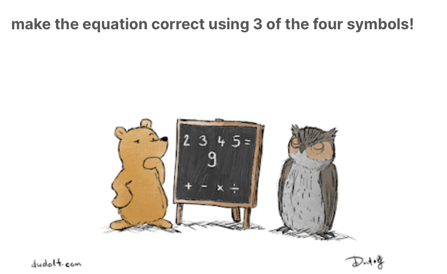 The four symbols you are to use only three of are clearly shown; and those three in proper order solve the equation..