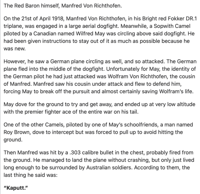 All my life Brown was credited with the kill — now some anonymous Australian gets the credit…
