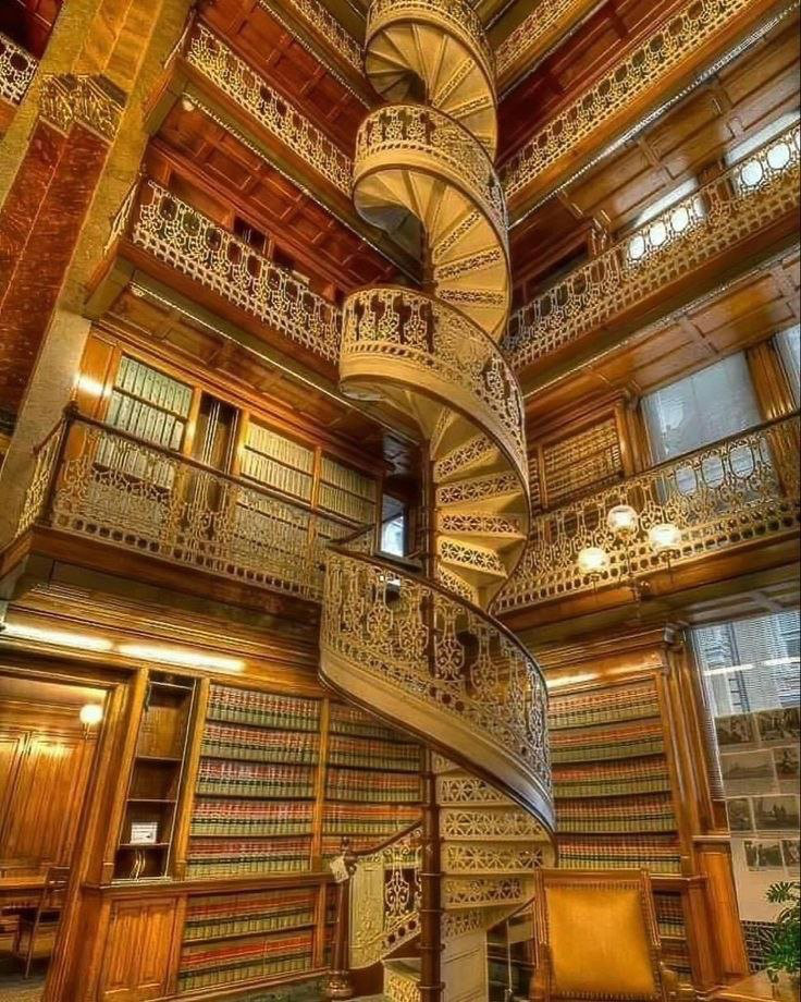 Spiral staircase in the Iowa State Capitol Law Library in Des Moines, Iowa.