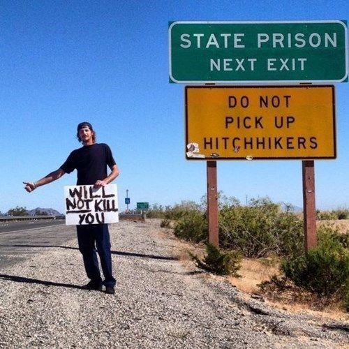 You’d think not picking up hitchhikers near a prison would be a no-brainer…