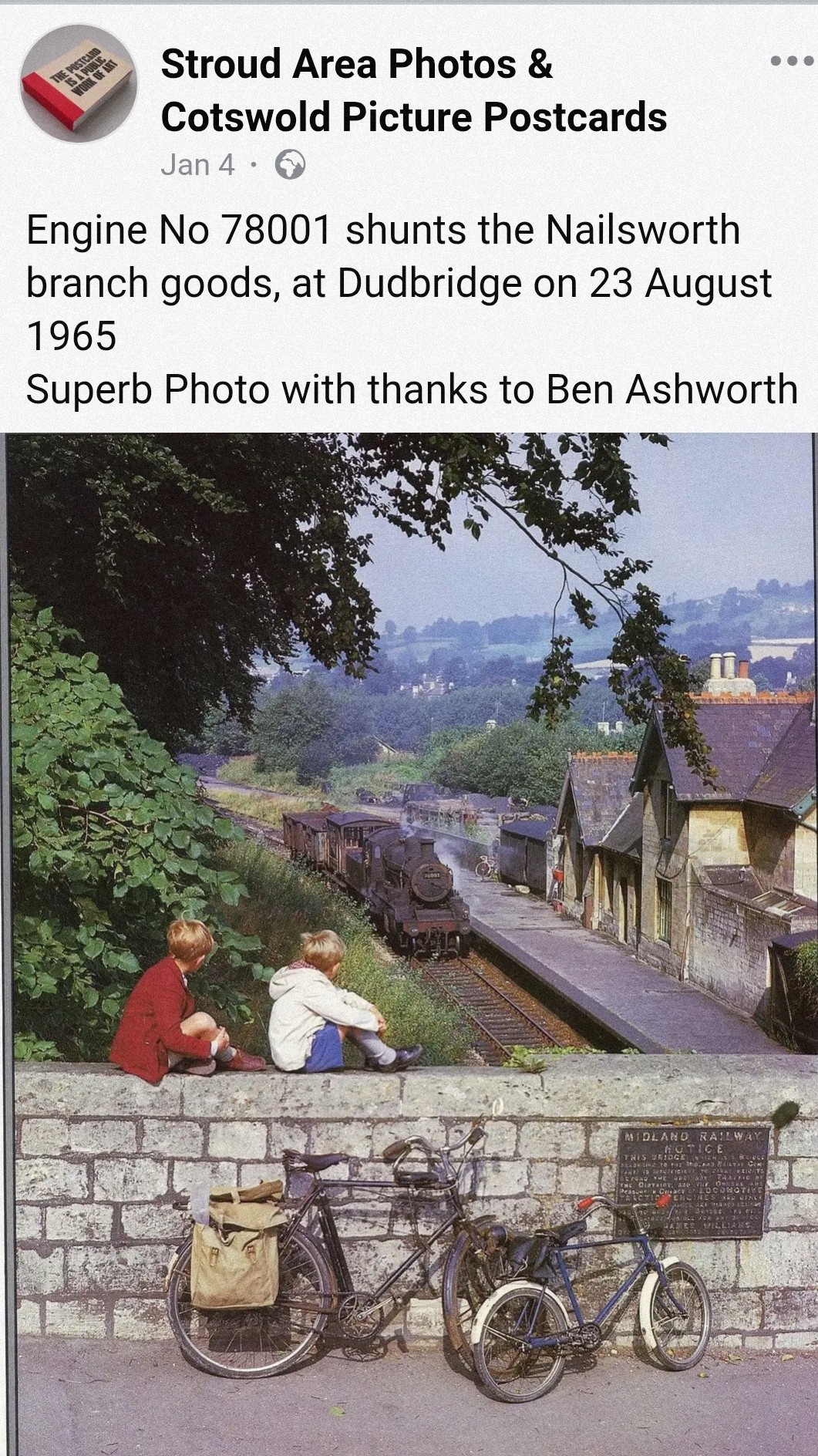 British Railway days, so I would say mid 1960’s. The loco looks like an Ivatt class 2MT 2-6-0. Probably a ‘Standard’ although they were a development of an LMS engine, and are on Midland rails. Too low a resolution to make out the number on the smokebox.