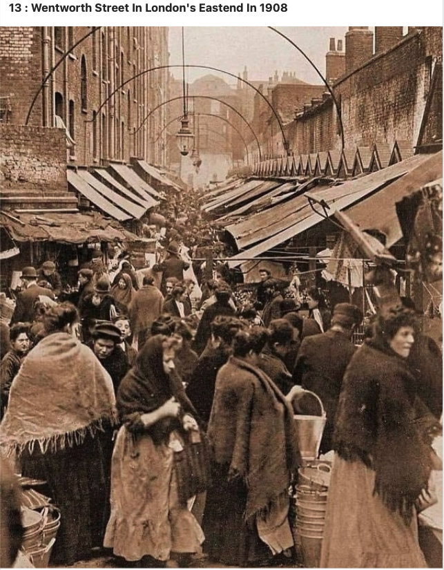 I’m making an assumption here, that because it’s a crowded street in the East End, there weren’t many well off ladies in the crowd.