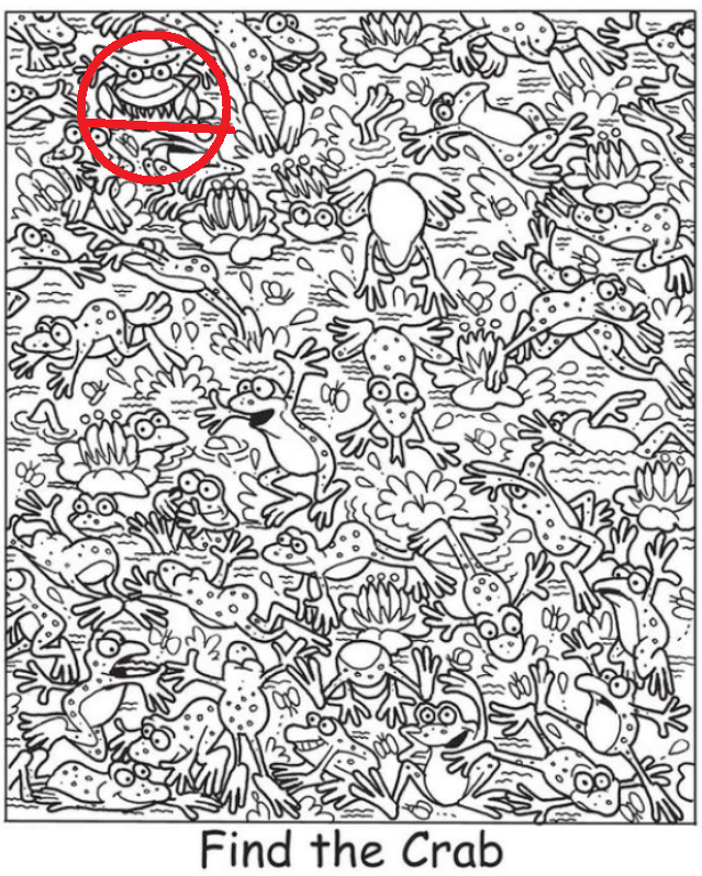So I’m wondering… Is there a frog sitting on the crab? And if so, where’s the frogs head?