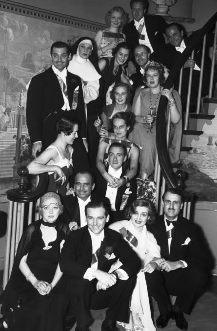 2/24/36: According to rows – starting from front…Miss Marion Davies; Douglas Fairbanks Jr., Carole Lombard and Prince Serge Obelensky; 2nd row–Douglas Fairbanks Sr.; 3rd row–Mrs. James Bodrero, of Santa Barbara; Mrs. Donald Ogden Stewart with arms about Clifton Webb; 4th row–Clark Gable, Miss Dorothy Fell of New York and Mrs. Joan Payson (sister of Jock Whitney); 5th row–Countess Di Frasso in robe, Susan Rosenberg and Donald Ogden Stewart; 6th row–Virginia Bruce, Delmer Daves and Jean Negulesco.