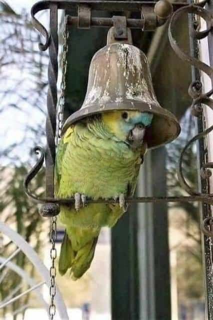So did my two budgies, which I had as a young girl, one of them sat under the little bell that hung in their cage. But that was at a time no one thought to take photos, alas! .🦜