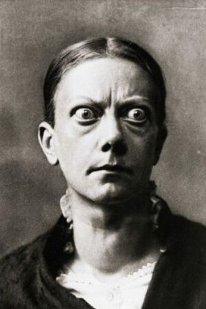 “A patient with exophthalmic goiter caused by hyperthyroidism. Changes in the eyes take two forms: retraction of the eyelids and proptosis, or bulging.