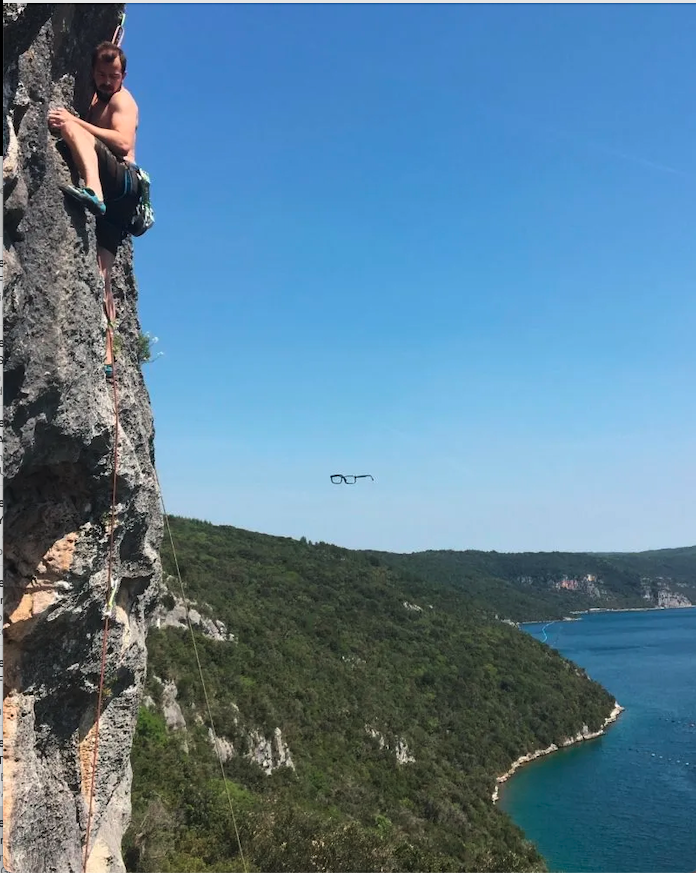 from what I remember , the accompanying text stated that he did indeed lose those glasses and they were caught by the camera. It also stated that the trip back down must have been terrifying —but did not acknowledge what happened after.