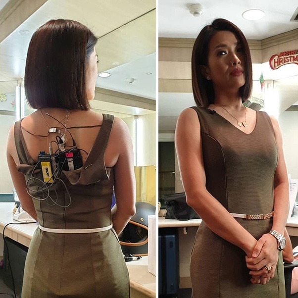 newscaster, rear view