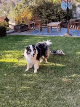 Except my dog would also be holding one of the golden’s toys in her teeth…. or else be running underneath her, nipping at her belly.