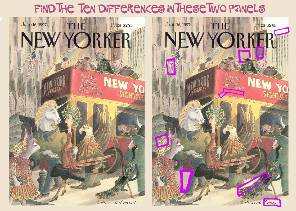 I am not getting along with these New Yorker covers. I see some differences, but it all looks kind of fuzzy.
