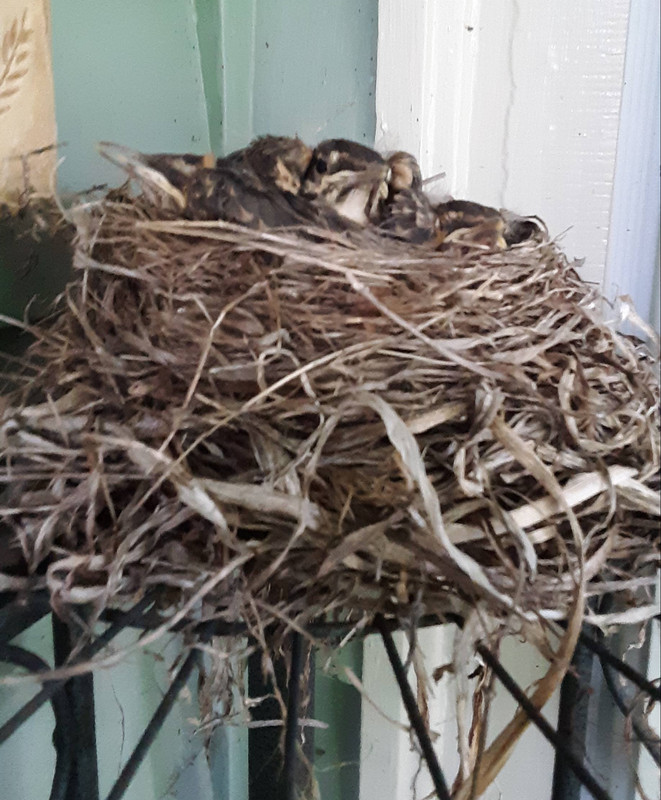 My little baby robins left the nest yesterday (which the parents built on my porch). Empty nest syndrome…. 🙁