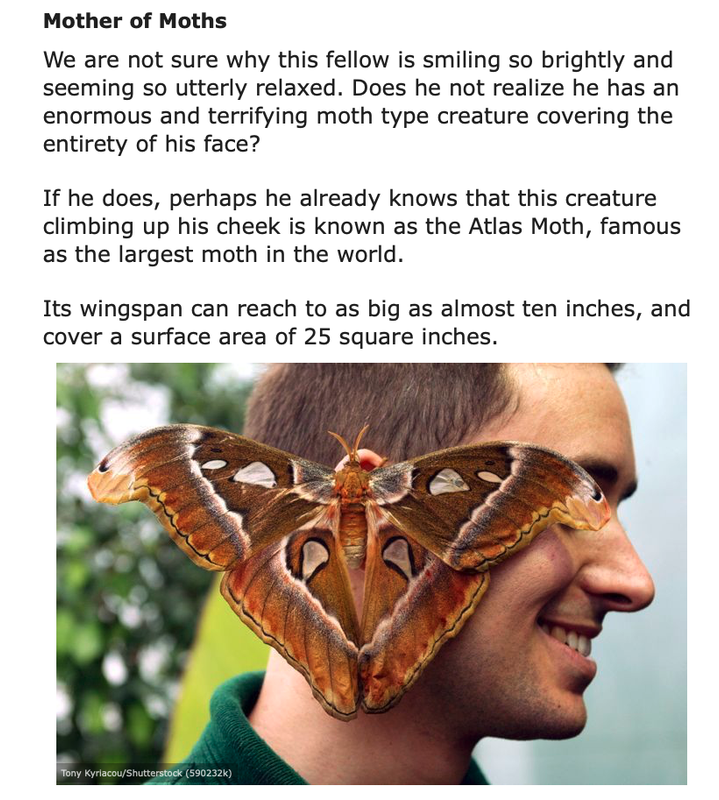 “Terrifying moth type creature?” Why not “Gorgeous Butterfly-like creature???”