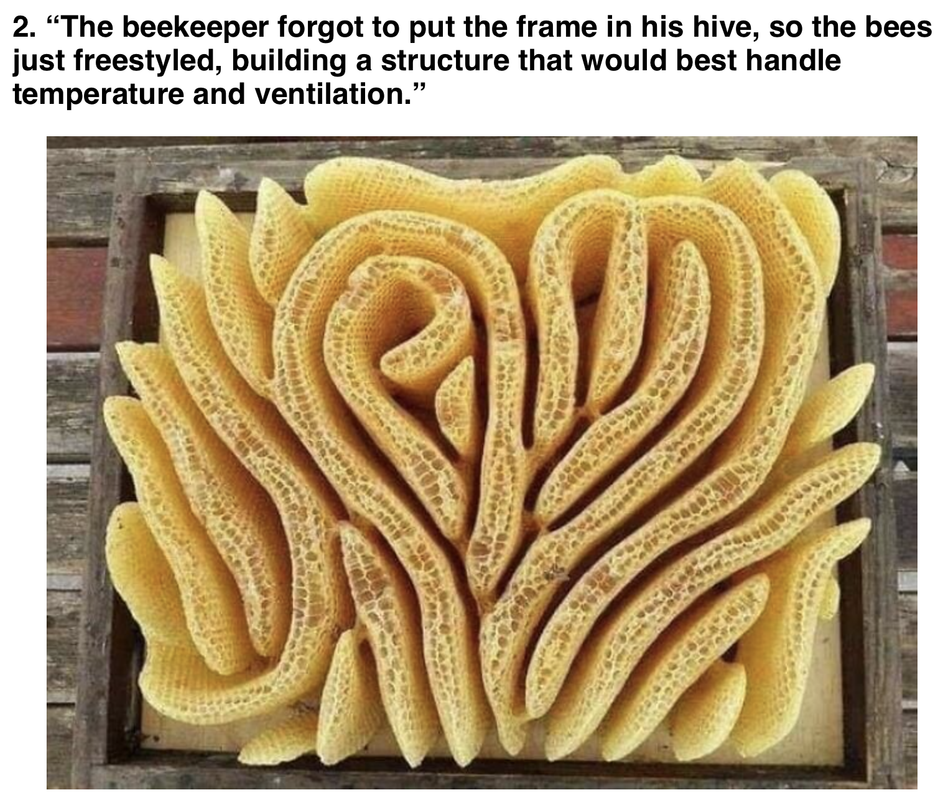 Our resident bee biologist encouraged people to put weird thins in beehives to see what the bees would do with them. (coat hangers come to mind…)