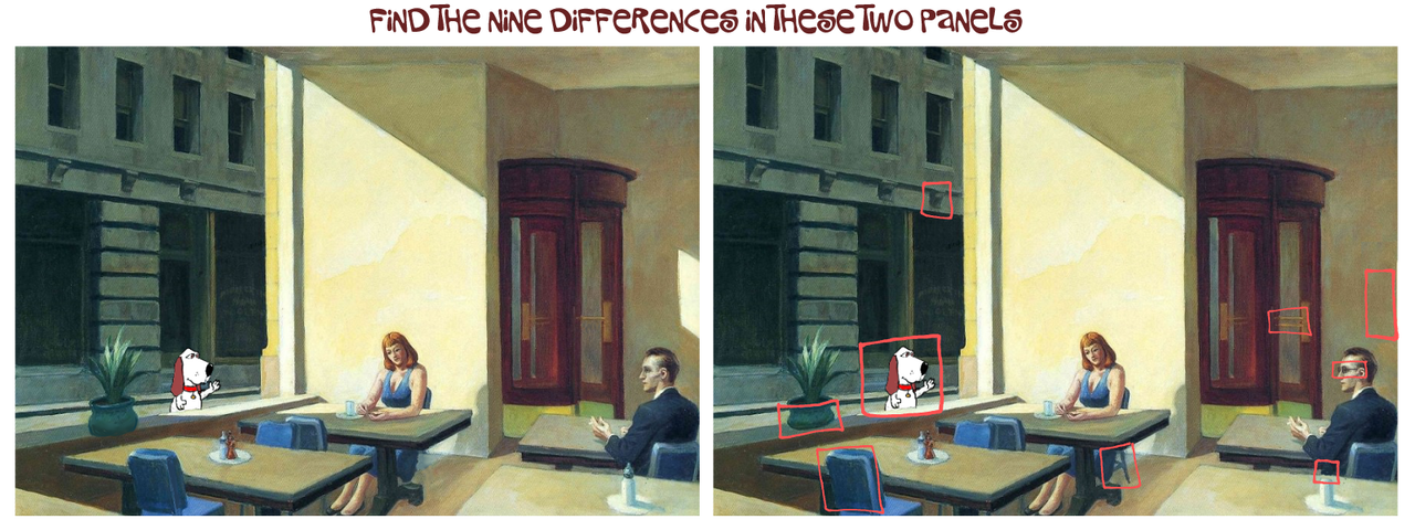 I didn’t see any comments about it, but I just know you’re all trying hard to find nine differences…. And we should do that before that poor starving puppy dog has to stand outside too long in the cold.