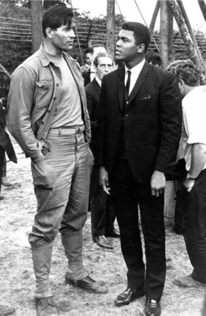 Clint Walker is the actor’s name in the credits. He played a character named Samson Posey. As you can see, he was in fact a physically large, imposing man. I assume Ali was on the set to visit his friend Jim Brown, who played Robert Jefferson in the movie.