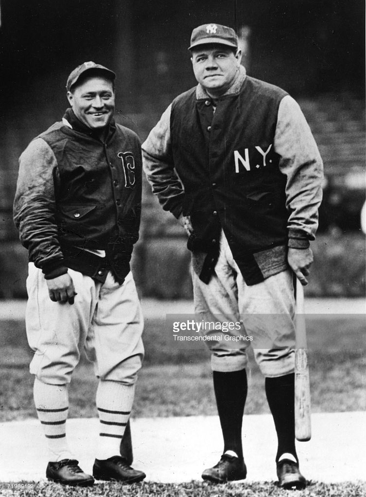 Hack Wilson when he was with the Brooklyn Dodgers with Babe Ruth(left to right).