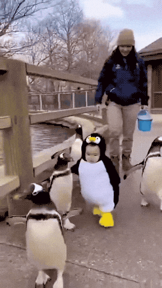 I love that the baby and the penguins have the same gait.