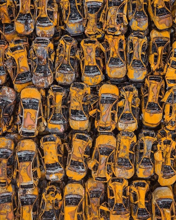 I couldn’t find any backstory, but obviously, it must have been a shipment of new cars, to be all the same model and color… I wonder what happened!