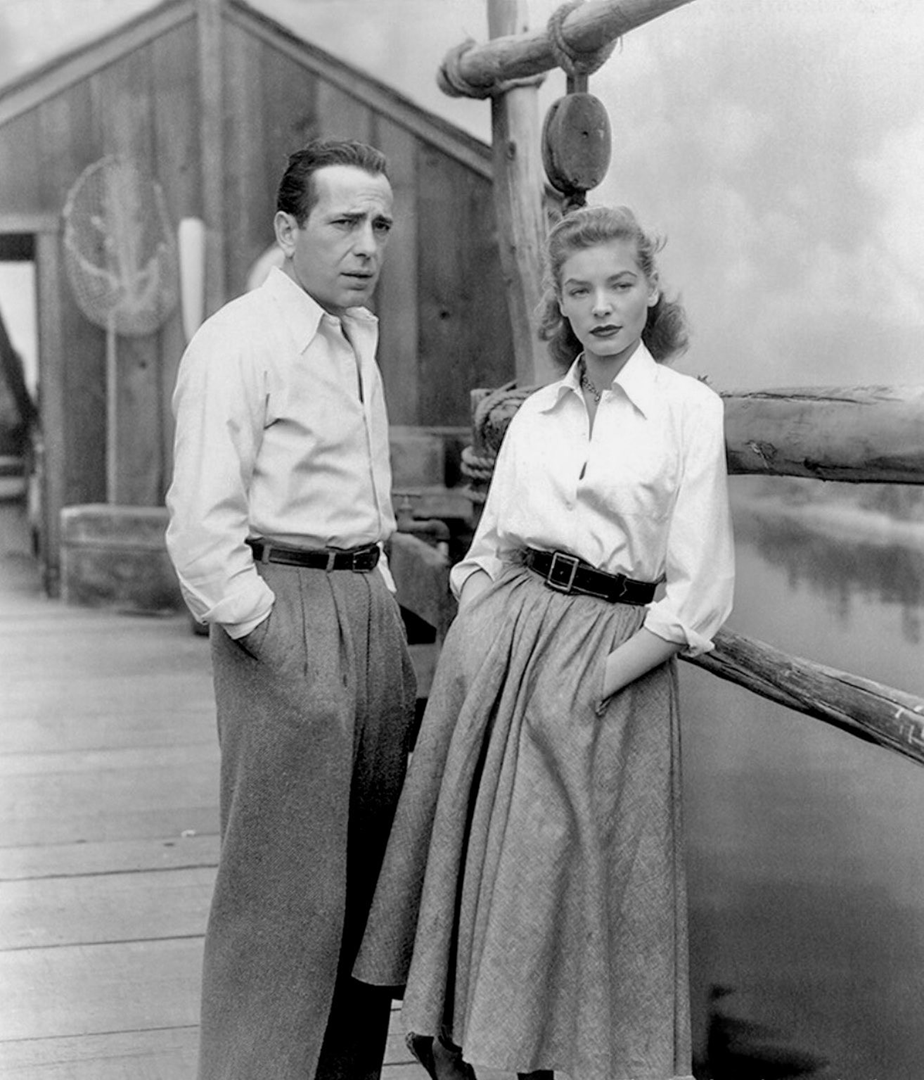 Humphrey-Bogart-and-Lauren-Bacall-photographed-on-the-backlot-at-Warner-Bros-Studios-on-the-set-of-the-crime-drama-KEY-LARGO-1948-dir.-John-Huston