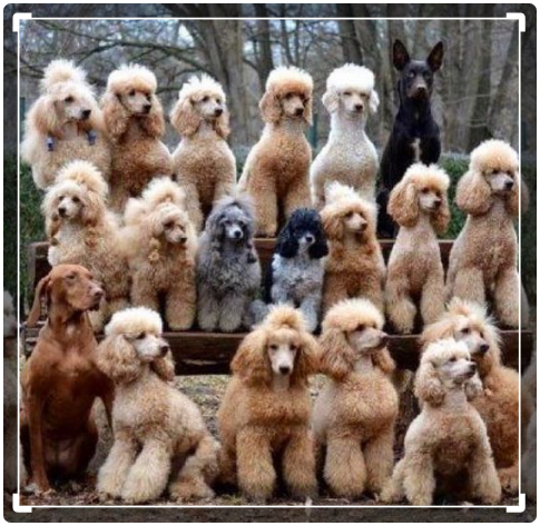 3? The one in the middle of the 2nd row might not be poodle. Or all poodle.