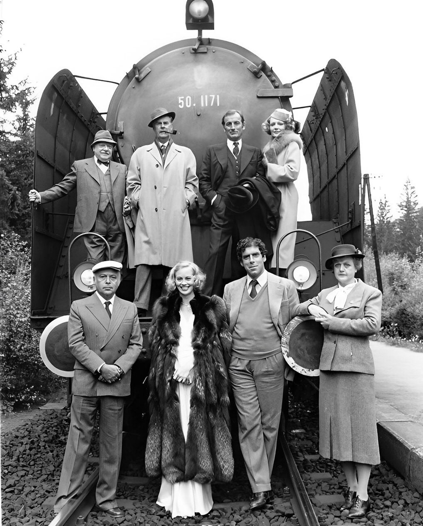 Gerald Harper, photographed on location at the Klangenfurt-Rosenbach railway in Austria with the cast of the 1979 remake of