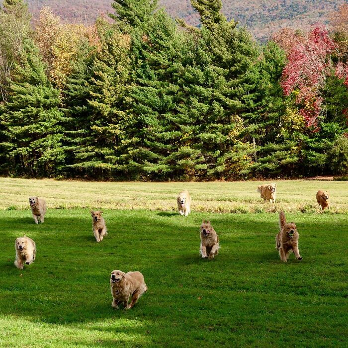 It’s a gang of goldens! I believe they are more commonly known as “goldangs!”