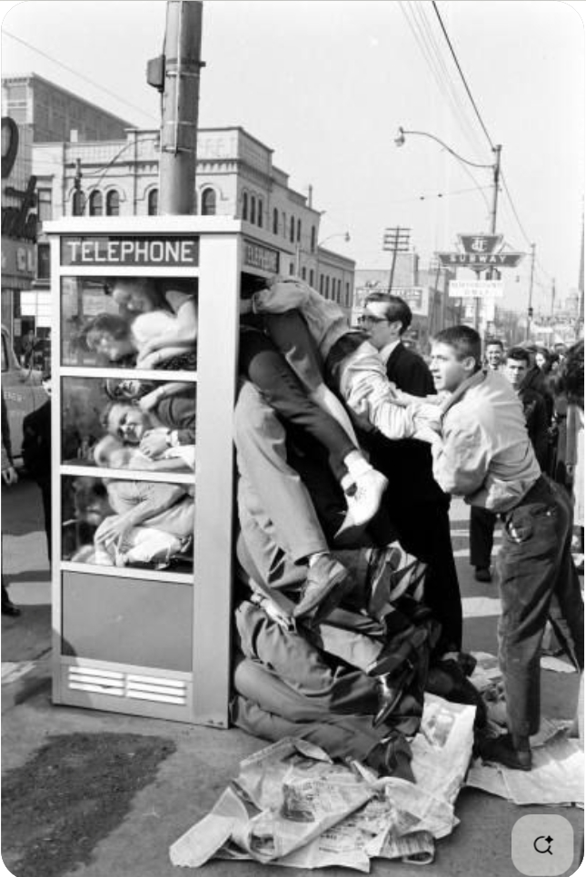 Phone booth stuffing was a fad in the 1950s…. Mostly among young adults and college students.
