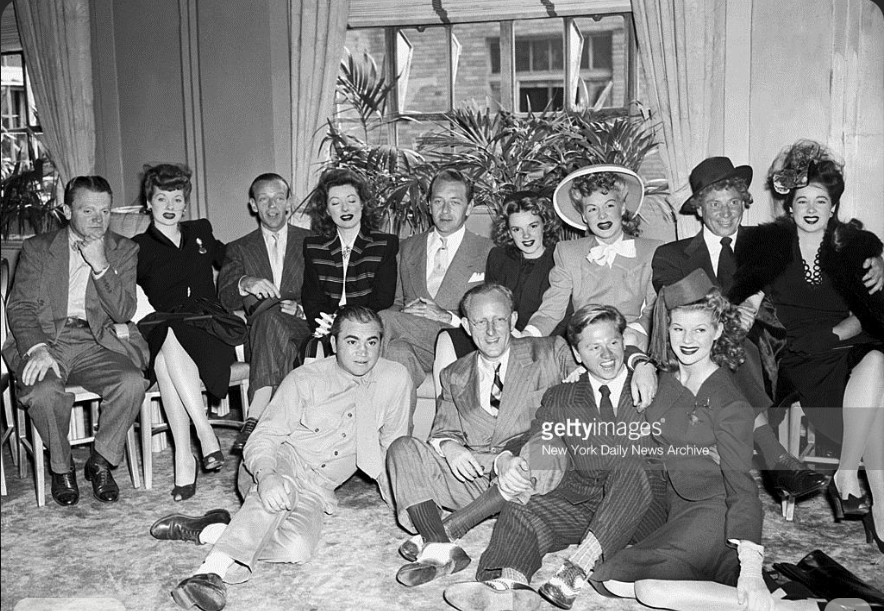 Front row: Sergeant Barney Ross, Kay Kyser, Mickey Rooney, and Rosemary LaPlanche