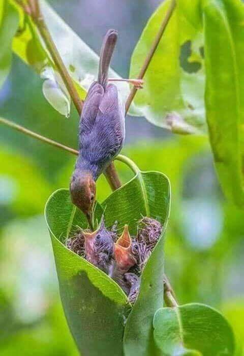 But the gist is, the female chooses a sturdy leaf, and wraps it around herself.. if it’s too small, she adds another ..