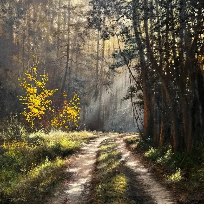 Igor Dubovoy (Russia, b.1972 ) – ‘Forest road’, 2025 – Oil on Canvas – 50 x 50 cm (19.7 x 19.7 in)