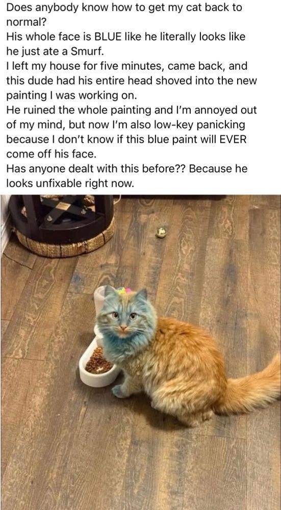 If my cat got a faceful of paint, I’d be concerned about more than the color!