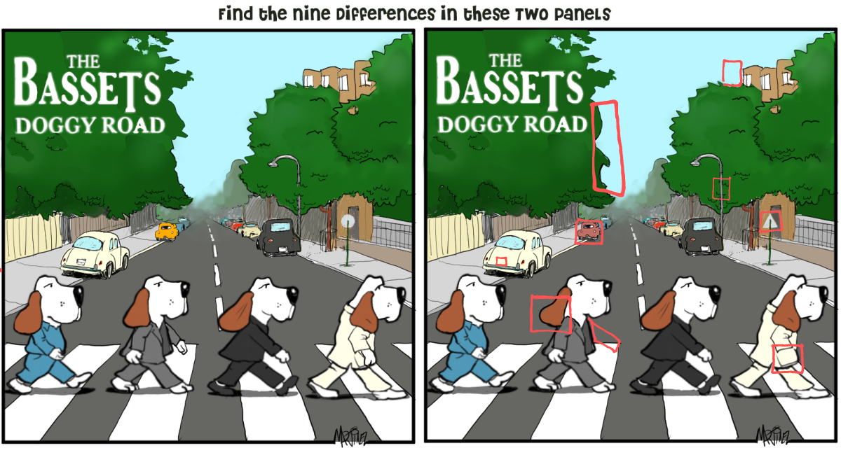 The iconic cover of the Bassets’ “Doggy Road.”