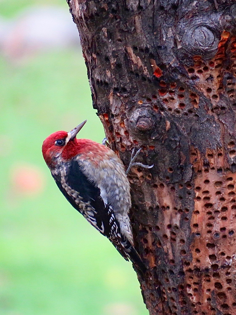 Red-breasted Sapsucker (Sphyrapicus Ruber) on a willow tree.