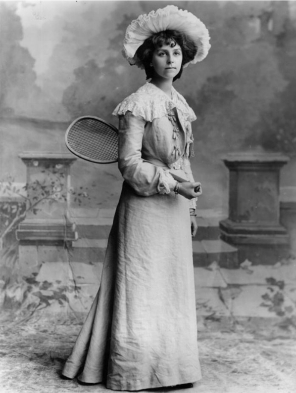 Correct sir… According to a newspaper caption at the time, which was 1875…. this is “Miss Barton in her tennis costume.”