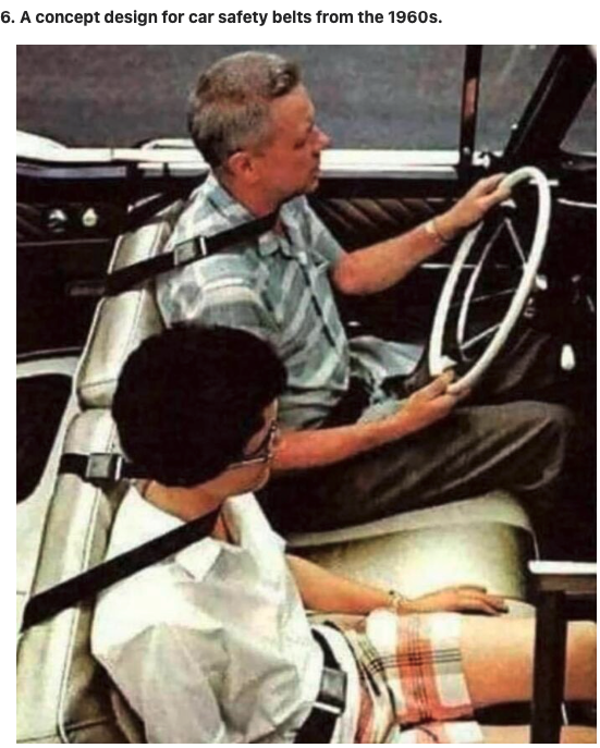 Neither reported the exact provenance of this picture, but both said the 3 point seat belt still in use today was invented at Volvo in the late 1950s.