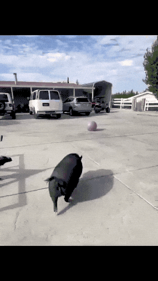 Playful porker pushes pink… um… pink…. ball.