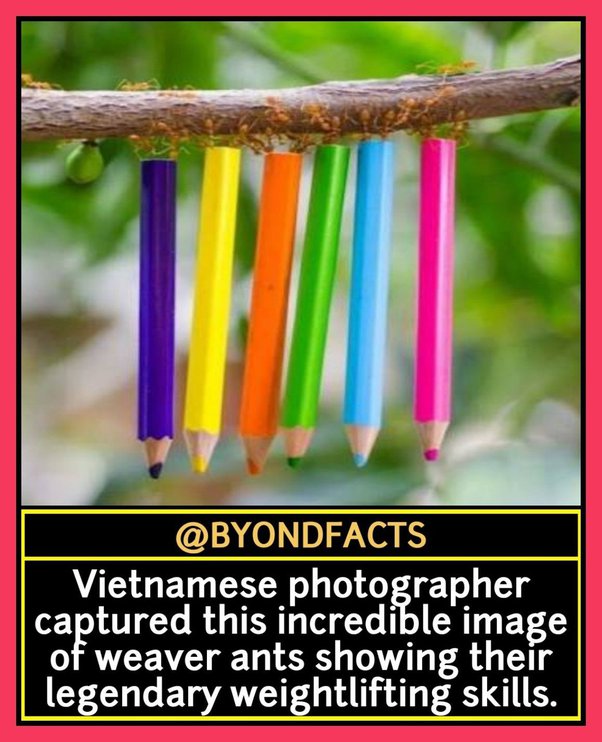 “Photographer Thanh Ha Bui, 31, decided to test the weaver ants – famed for their weightlifting skills – as they marched across a branch in his parents’ back garden in Vietnam.