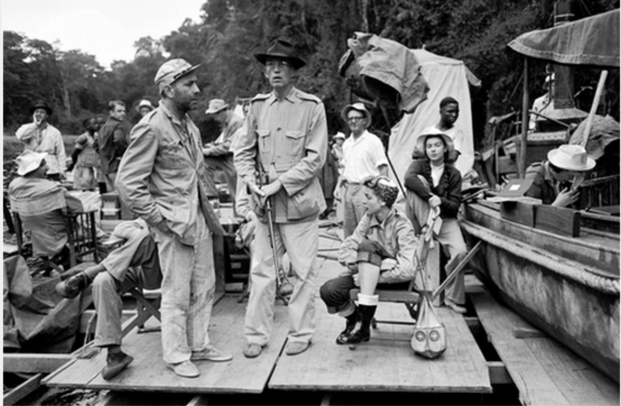 Then I realized it was Lauren Bacall… not in the cast, but his wife. She must have traveled with him to Africa. That might be John Huston in the middle.