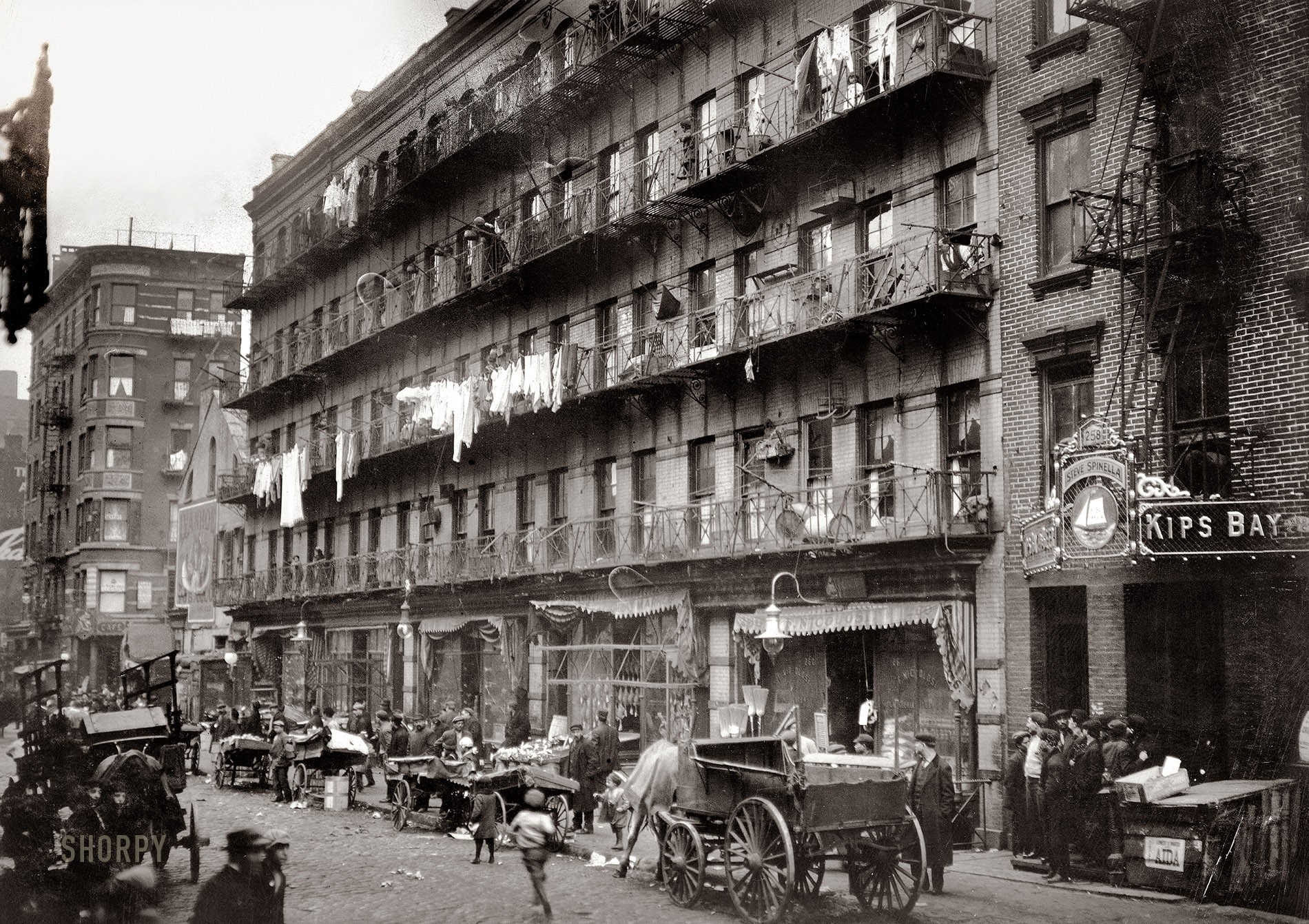 This is a row of tenements on Elizabeth Street, in the Italian district, on the lower east side of Manhattan, photographed in March 1912 by Lewis Hine, the same fellow who took the pictures of child laborers.