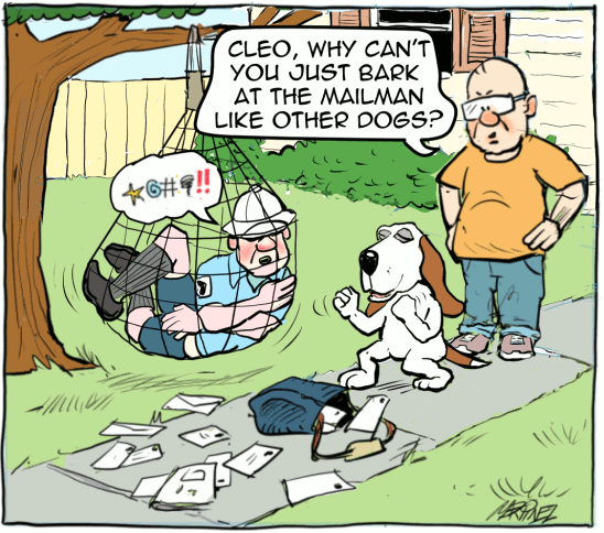 And you are right. Cleo should be nicer to the mailman. But, then I didn’t see any chew toys in that bag.