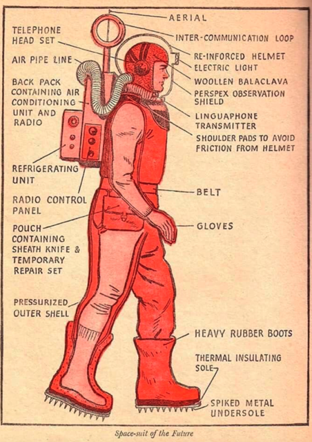 1950s space suits were puffier, and more modern looking… We see them all the time in sci-fi movies, and they don’t look this antique.