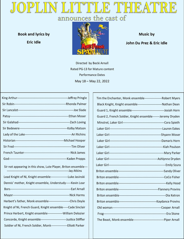 The Joplin Little Theatre production of “Spamalot” hits the boards on Wednesday.
