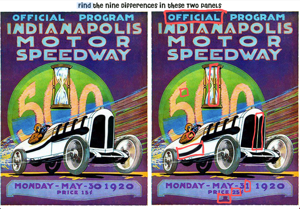 Probably not as interesting as the one where the drivers are basset hounds… Maybe that’s why it’s been given a little extra interest, by having two copies, with nine differences between them.