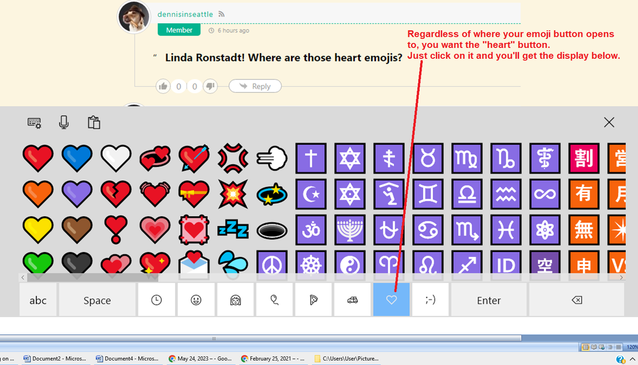 button; but choose where you want to put them by clicking on the spot with your cursor before opening the keyboard.